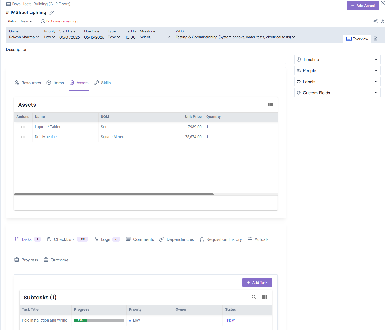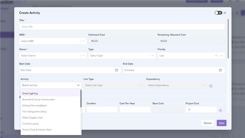 - Type: Choose the type or category of work (e.g., Civil, Electrical, Plumbing, etc.).