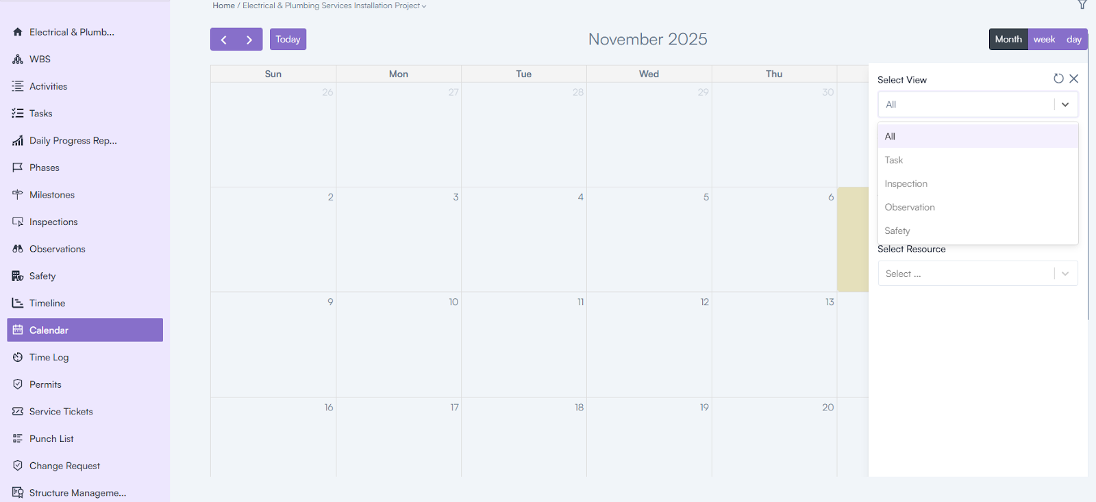 The Calendar provides a structured view of all tasks related to a project, displayed in a calendar format.