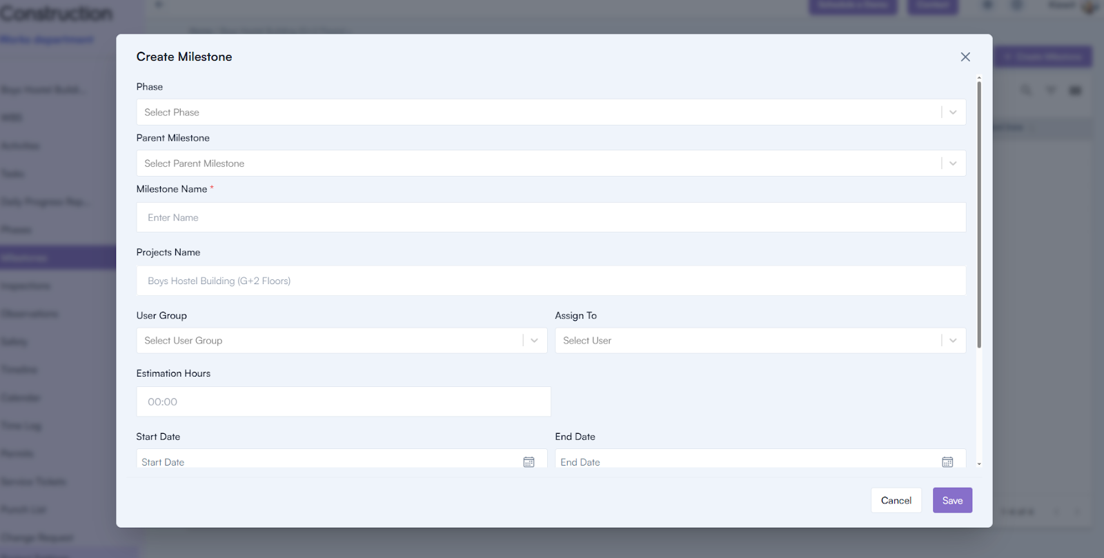 - Estimated Hours: Provide the estimated time required for the milestone.