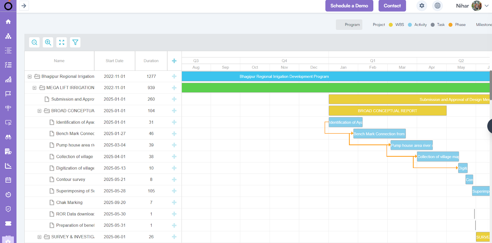It is displayed in a vertical chart format, allowing users to track progress and dependencies. Additionally, users can link a task to another task directly from the timeline.